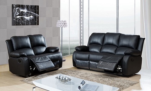 סלון דו ותלת מושבי עשוי עור עם רקליינרים בכל ספה