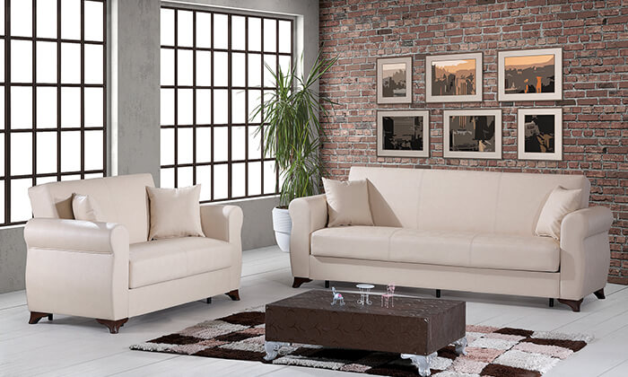 ספה דו מושבית, דגם דרים, נפתחת למיטה זוגית אורטופדית עם ארגז מצעים