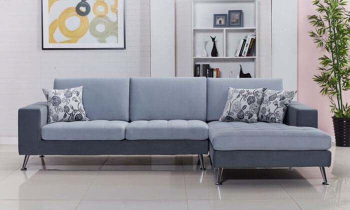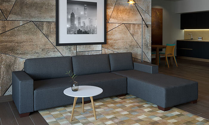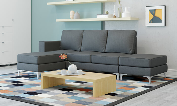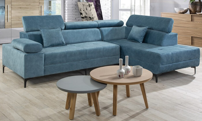 מערכת ישיבה פינתית בריפוד בד נעים למגע