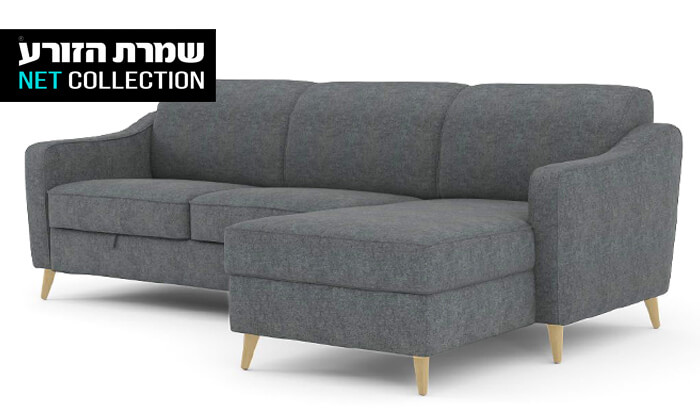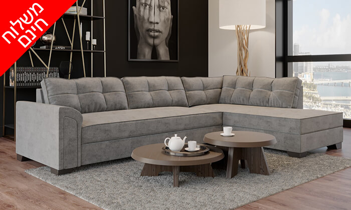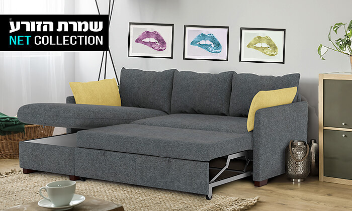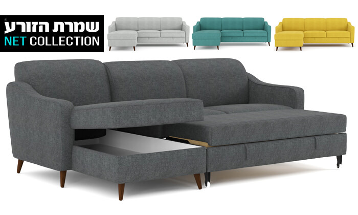 ספה פינתית דגם 'נישנוש' הכוללת שזלונג מתחלף, מיטה זוגית וארגז מצעים גדול