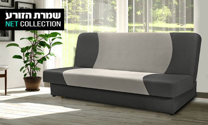 מערכת ישיבה בעיצוב מודרני הנפתחת למיטה וכוללת ארגז מצעים גדול