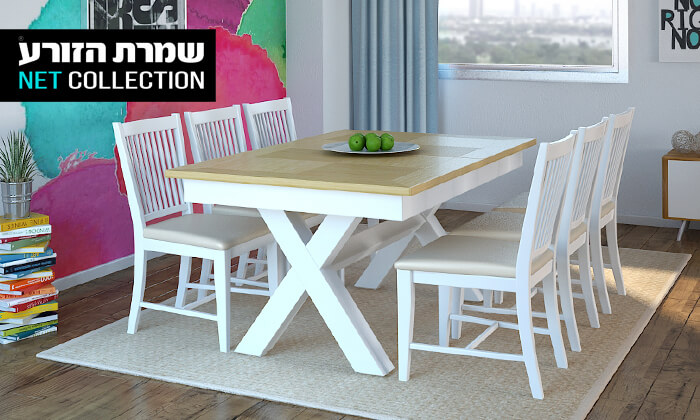 פינת אוכל דגם 'מיקס' של שמרת הזורע עם 6 כסאות ו-2 הגדלות