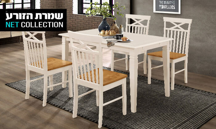 פינת אוכל דגם 'מסקרפונה' ו-4 כסאות דגם 'מישיגן' של שמרת הזורע עם אפשרות להגדלה חיצונית בתוספת תשלום