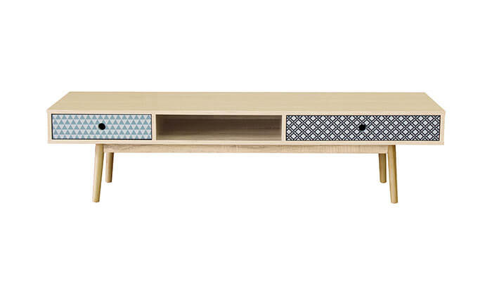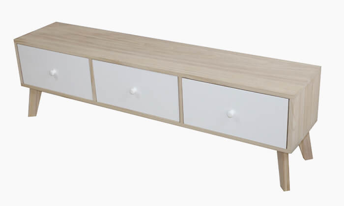 שידת טלוויזיה מעץ בגווני בוק ולבן בעלת 3 מגירות המגיעה בשני צבעים לבחירה
